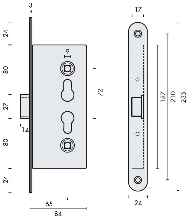 Serrure standard réversible à encastrer pour porte métallique
