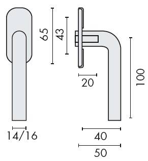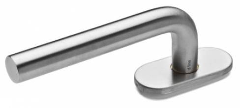 Béquille de fenêtre L 16 mm, montée sur rosace ovale fine de 4 mm à sous construction avec roulement à billes, offrant 2 points de fixations permettant la pose de vis traversantes