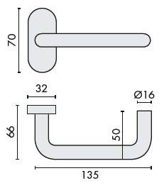 Paire de béquilles U 16 mm sur rosace ovale, inox brossé 304