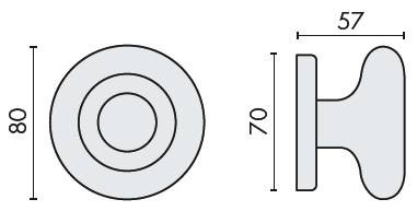 Bouton fixe ROUND 35, Ø 80 mm sur rosace ronde, laiton poli