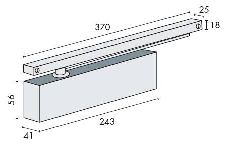 Ferme-porte à bras à glissière à crémaillère elliptique, force 1-3 suivant norme EN 1154 A. Réglage de la vitesse de fermeture et de l'à-coup final par vis, freinage à l'ouverture non réglable, capot anti-vandalisme. Pour portes de largeur maximum : 950 mm