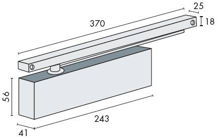 Ferme-porte à bras à glissière à crémaillère elliptique, force 1-4 suivant norme EN 1154 A. Réglage de la vitesse de fermeture et de l'à-coup final par vis, freinage à l'ouverture fixe, capot anti-vandalisme. Pour portes de largeur maximum : 1100 mm