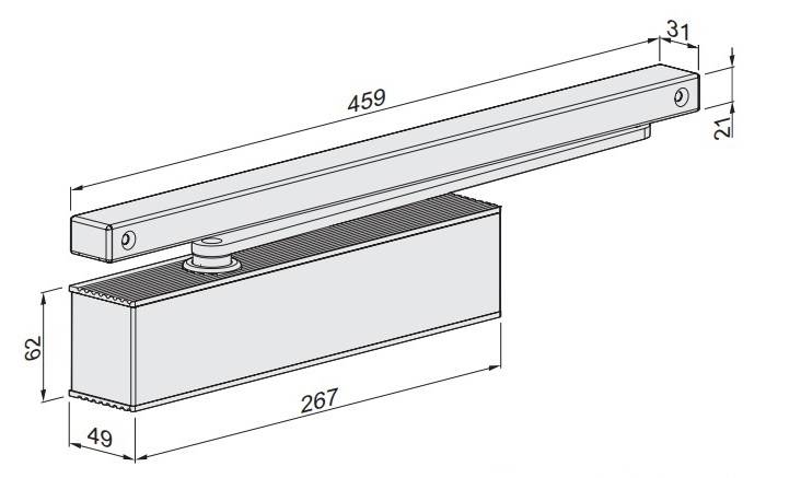 Ferme-porte à bras à glissière à came, force 2-5 suivant norme EN 1154 A. Force de fermeture réglable par vis.Réglage de la vitesse de fermeture et de l'à-coup final par vis, freinage à l'ouverture réglable capot anti-vandalisme Inox. Pour portes de largeur maximum :1250 mm