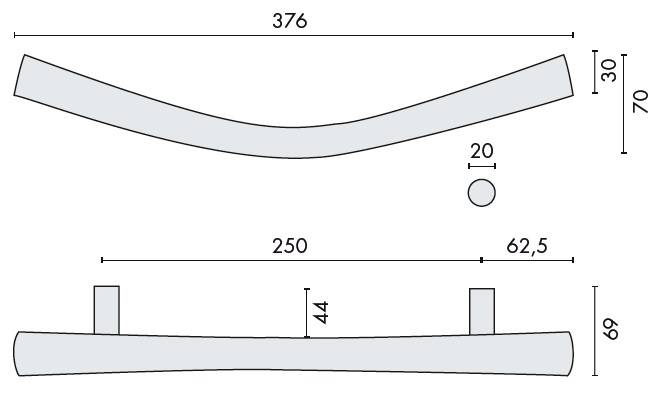 Poignée de tirage déportée ZEN, entraxe 250 mm, montage simple ou double