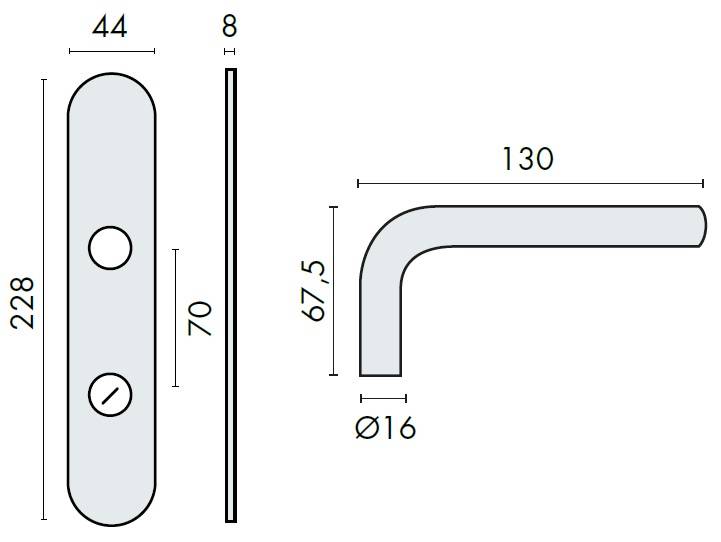 Paire de béquilles sur plaque LOGINOX L 16 mm fonction WC, inox poli