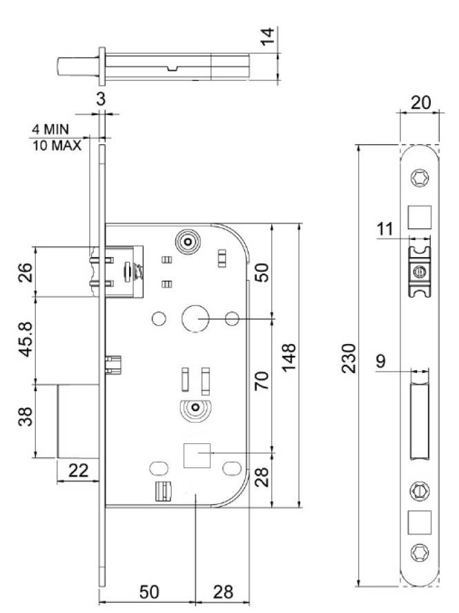 - Facilité d'installation : Sans gâche, cette serrure est simple à installer, ce qui vous permet de sécuriser rapidement vos espaces.