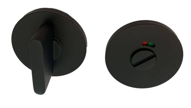 Ensemble condamnation - dé condamnation avec voyant série "Project". finition acier inox galvanisé en Epoxy noir mat, diamètre 53 mm, épaisseur 6,5 mm et carré de 6*6 mm.