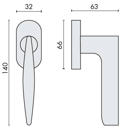 Béquille de fenêtre GAIA sur rosace ovale, fournie sans mécanisme DK